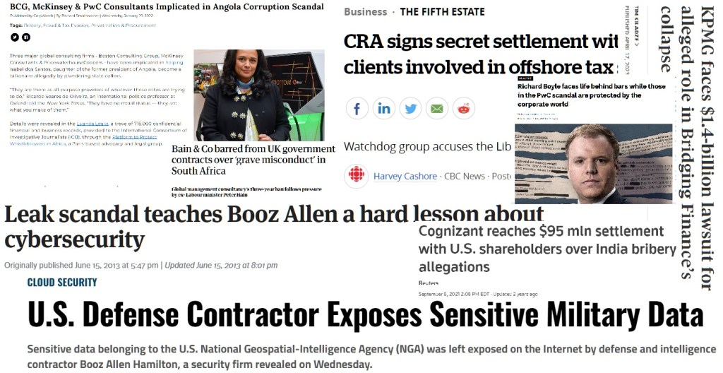 Where you think you’re safe from McKinsey you better watch out for BCG. Bain. Deloitte. Accenture. Where one company may be banned, the same players may just jump ship to the next vessel. Let’s deep dive into some of the types of predicaments these companies can find themselves in at a global scale.