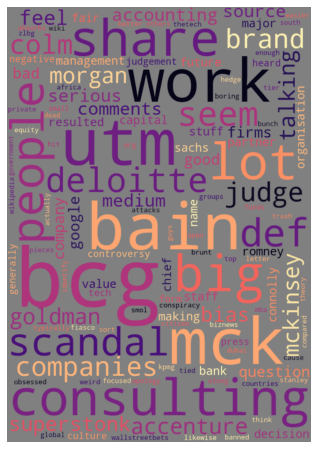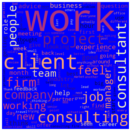 With consultants being so private Reddit seemed one of the only accessible places online that one could go to get any sort of open data on what was going on. My initial thought to quantify their posts came from seeing so many individually depraved comments about society or their work life while going through the posts that I assumed some of that would come out in the data.