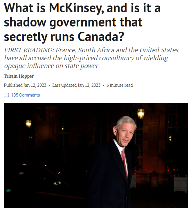 Hopper, Tristin. “What is McKinsey, and does it secretly run Canada?” National Post, 12 January 2023, https://nationalpost.com/opinion/first-reading-canada-the-latest-country-accused-of-handing-outsized-power-to-mckinsey. Accessed 30 May 2023.