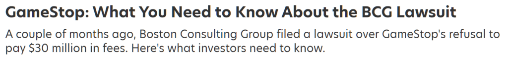 Zambonin, Bernard. “GameStop: What You Need to Know About the BCG Lawsuit.” TheStreet, 2 August 2022, https://www.thestreet.com/memestocks/gme/gamestop-what-you-need-to-know-about-the-bcg-lawsuit. Accessed 30 May 2023.